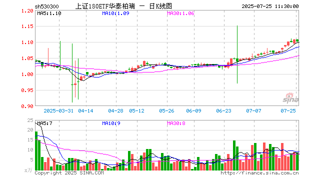 上证180ETF华泰柏瑞(530300)业绩比较基准为上证180指数收益率,管理人为华泰柏瑞基金管理有限公司,基金经理为李茜,成立(2024-12-30)以来回报为10.78%,近一个月回报为6.88%。